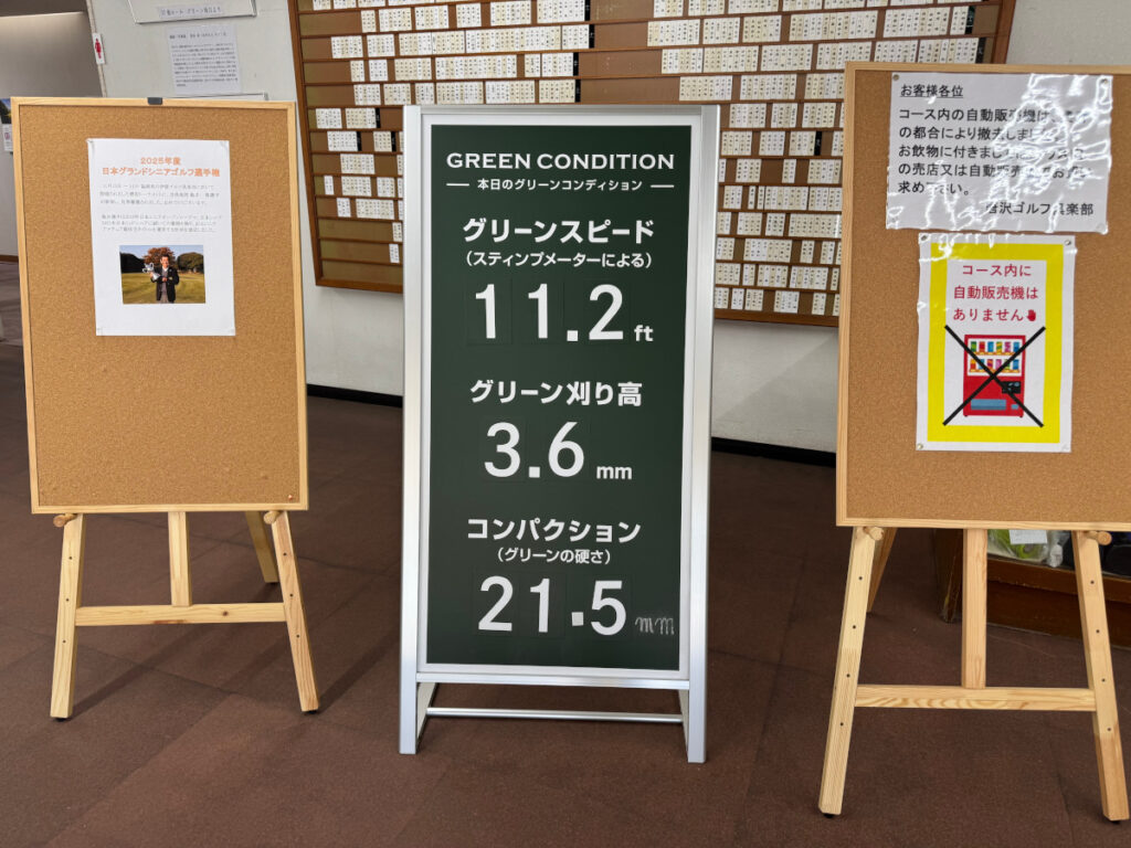 久しぶりのホームコースは仕上がっていました。グリーンスピードの表示は 11.2ft になっていましたが、乾いてきたらもっと速い印象でした。多分霜の影響もあって計測が甘くなっていたのではないかと思われます。