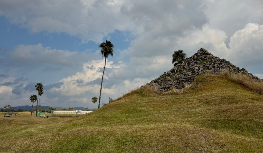 そんな中最後に残った人だけがティショットを打って激しい振りの中セカンド地点へ。残り距離は 240 Yard、残り 30 Yard くらいに置いたのですが、4m にしか寄せられず 4 人打っても入らずに結局はパー。
