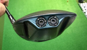 で、Qi4D のヘッドを観察してみると、ヘッド後方のウェイトは 2 箇所あって、それぞれ 9g がついています(後方ウェイトのトータルは 18g)。