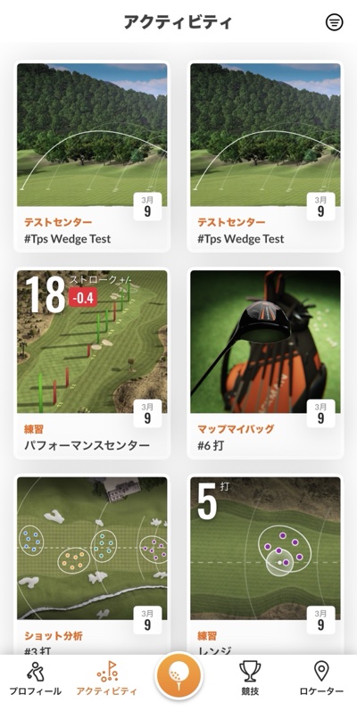 こうやって自分のセッティングを入れておいてその後そのクラブを使ってショット練習などをすると全てその記録が残るようになっています。その記録はアクティビティという形で保存されています。