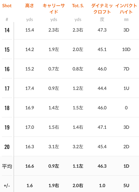 ボールの高さなどはボールが当たる場所でも変わってくるので、この辺りのデータのばらつきが少なくなるともっと飛距離がまとまってくるんでしょうね。
