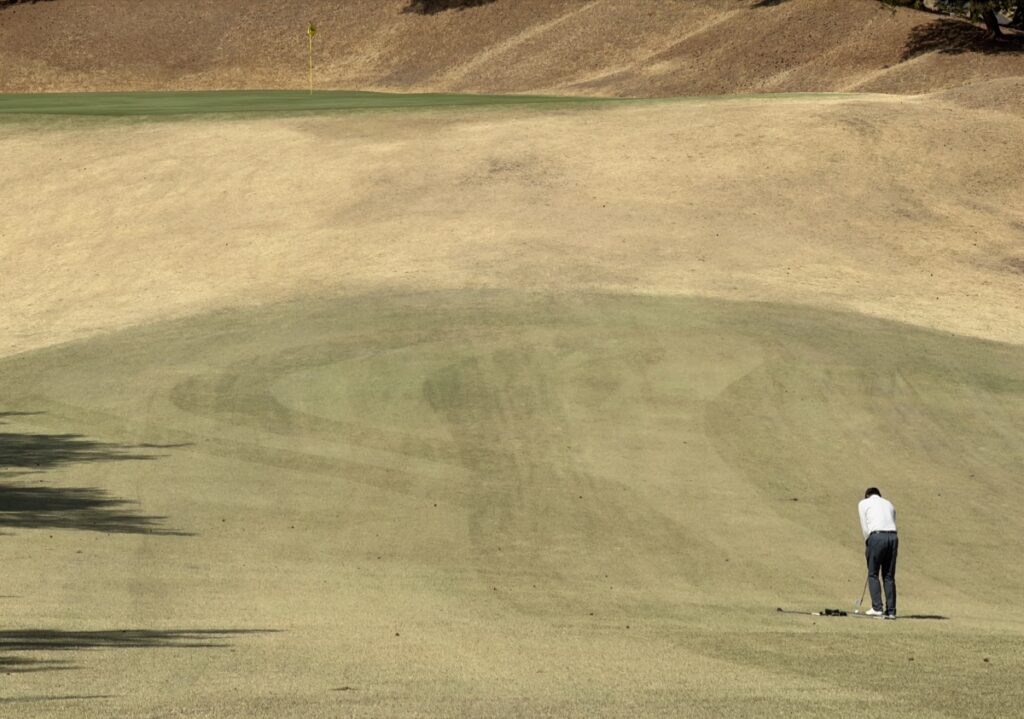 前日の三好コースでは高速グリーンと長い距離を堪能いただいたのですが、この日は短いけど狭くて速い高麗グリーンを堪能いただくという予定でした。