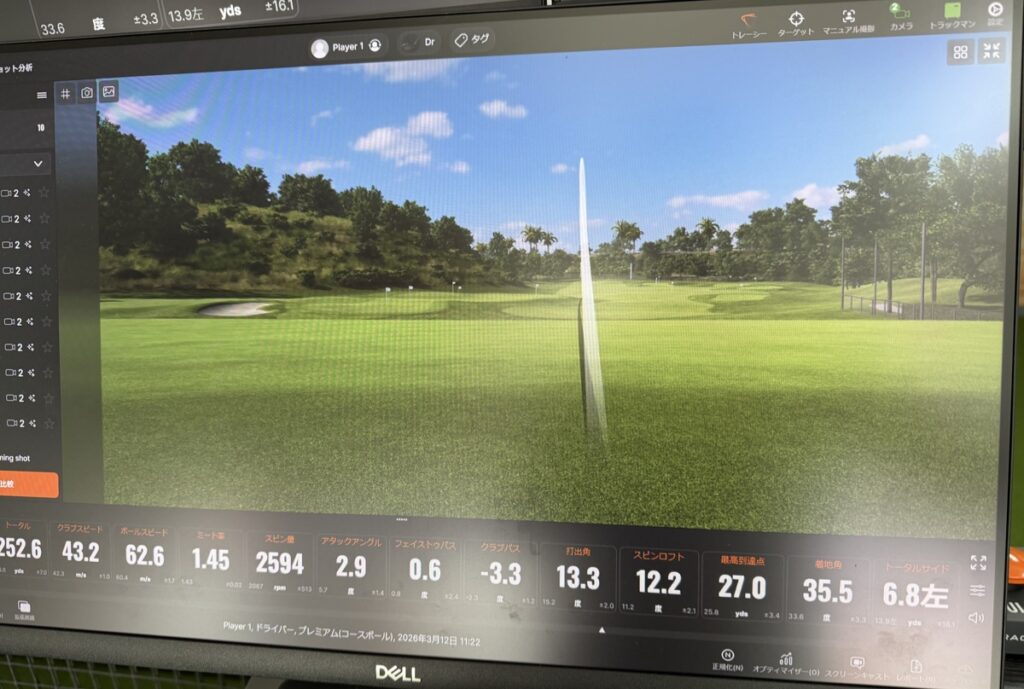 今回は多分一番使うであろう Trackman の機能の「ショット分析」をドライバーでやってみました。