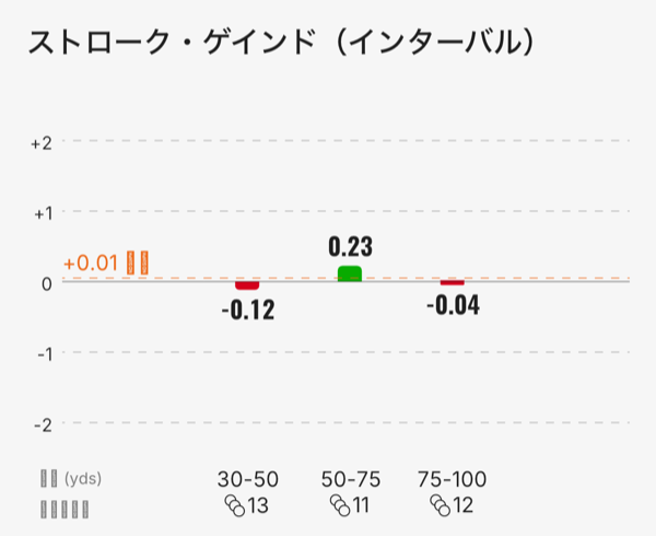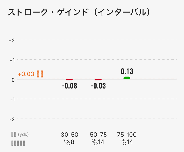 狙う距離はいつも通り 30−100 Yard で設定して、HDCP 0 の人との比較で評価を出しています。