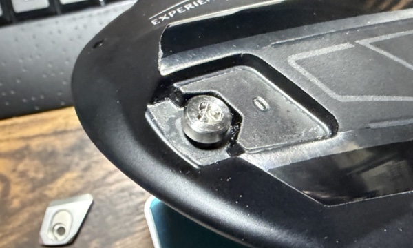 ただヘッド後方にはウェイトが付いていてねじ止めされています。これを外すことができればと思うのですが、ネジが特殊なんです。